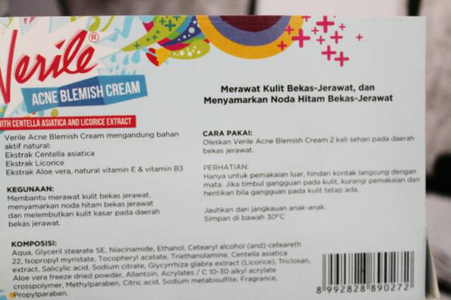 Verile acne blemish cream berfungsi menyamarkan noda hitam bekas jerawat dan meraawat kulit bekas jerawat. Verile acne gel new pack krim penghilang bekas jerawat 10gr. Cream · mengandung centella asiatica dan licorice extract · merawat kulit bekas jerawat dan membantu menyamarkan noda hitam bekas jerawat · melembutkan kulit kasar . Verile acne blemish cream (krim penghilang bekas noda jerawat). Produk ini bermanfaat untuk membantu mengatasi jerawat, menyamarkan noda .